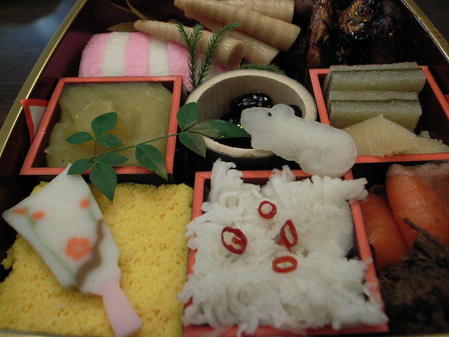 子年の今年は、お重にもネズミの形の大根が入っていました。There is a mouse shaped radish in JYU BAKO.