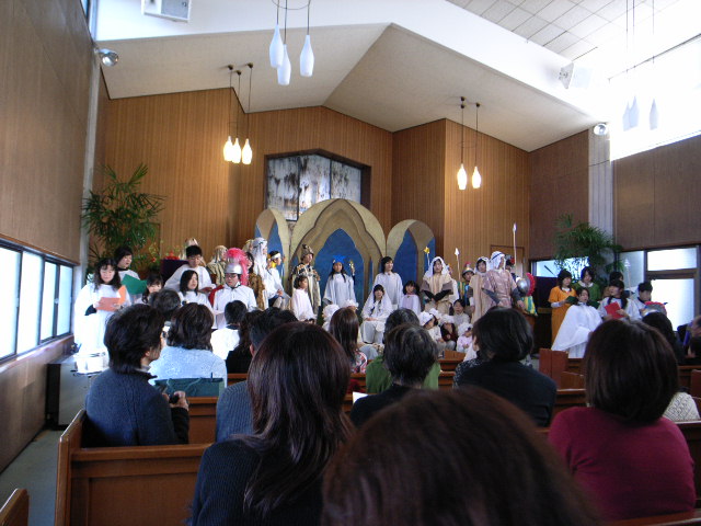 写真は毎年、子供達が演じるクリスマス劇・ページェントです。聖書の通り、しかも子供にわかり易いように、神の子イェスが、人の姿をとってこの世に生まれたことを伝える劇です。クリスマス・プレゼントの本当の意味・・・この世に贈られた最初のプレゼントは、イェス様ご自身であった・・・それを私達に教えてくれます。