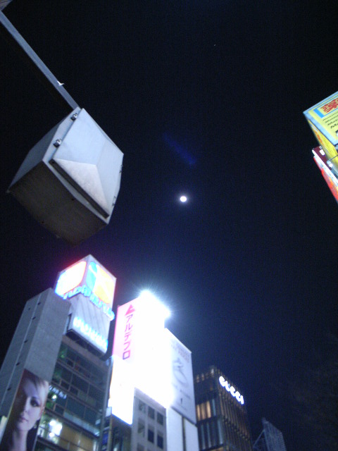 お祭り騒ぎの後、夜遅くまで働く人々の上に、月が綺麗です。