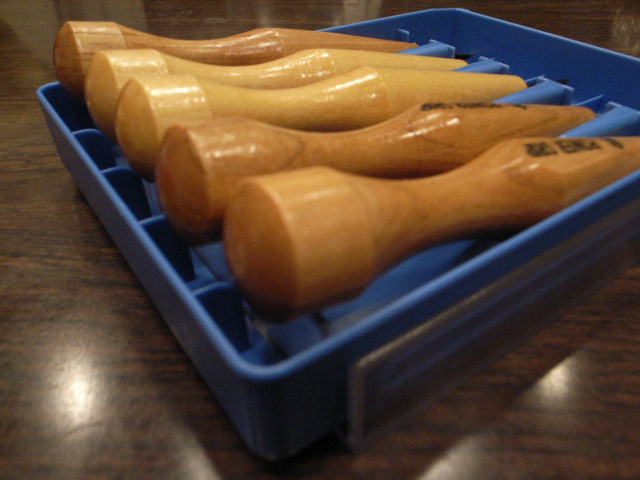 ところで、彫刻刀のケースが素晴らしいです。取り出しやすいようになっているのだ!By the way, the chisel case is cleverly made! It is designed to pick up the chisel easily.