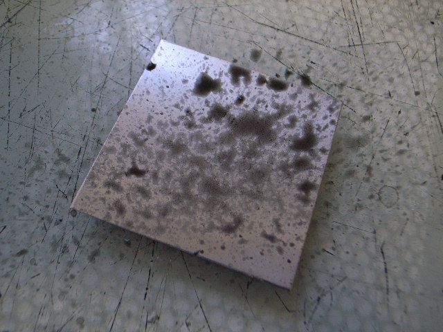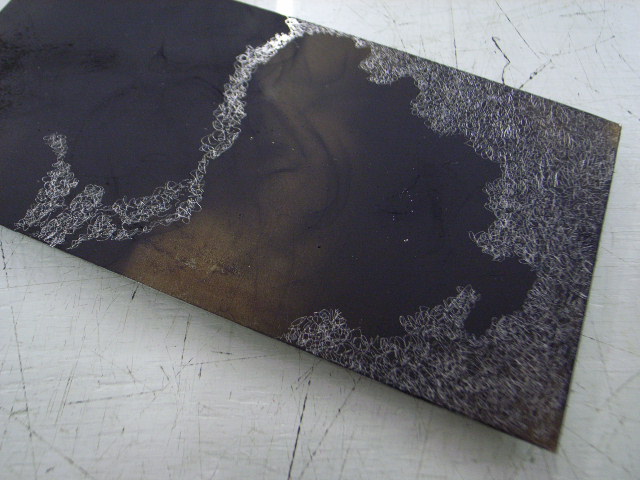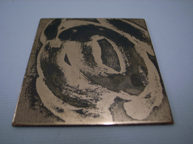 そして、ストップアウト(ワックスと同じようにプレートをカバーする液体)とホワイトスピリットでグルグルしたもの。