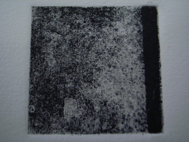 I pressed sandpaper on the softground to get the marks from the rough surface of the sandpaper. Then used whitespirit and stopping out varnish which covers the plate.